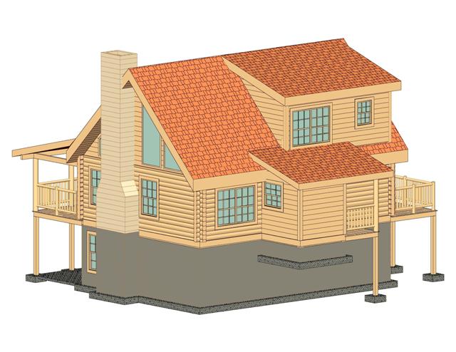We use software that produces a 3D model of your home. We can show you the home from any angle: from the top, the bottom, the side, the front, the back, inside or outside. We can take the roof off and let you look into rooms in 3D. We can slice the home in half and let you look inside. We can take you on a fly-through tour of every room. We can show you how it looks with round beams or square, vertical siding or horizontal, brown or green, and on and on and on.